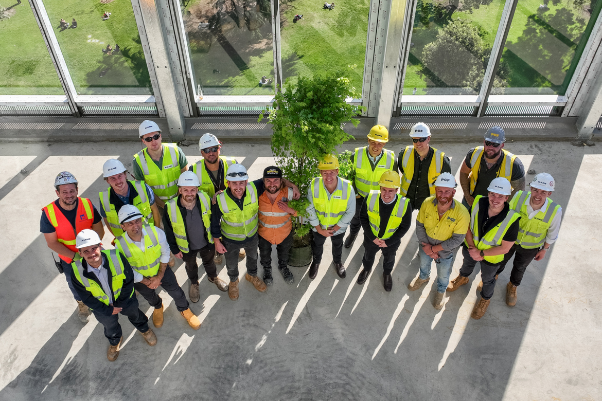 Our project team would like to acknowledge the collective effort that has brought the building to full height, working closely in partnership with PCF, TTW, Bates Smart.