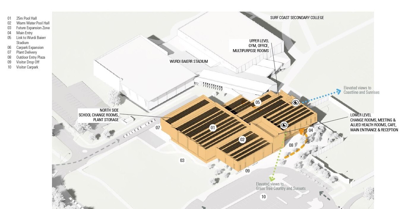These works mark strong progress toward delivering a contemporary, accessible and community-focused aquatic, health and recreation hub for the Surf Coast region. The centre is a partnership project with Stage One funded by the Australian Government, the Victorian Government and Surf Coast Shire Council. Stage Two is fully funded by the Victorian Government, through the Regional Sports Infrastructure Program.