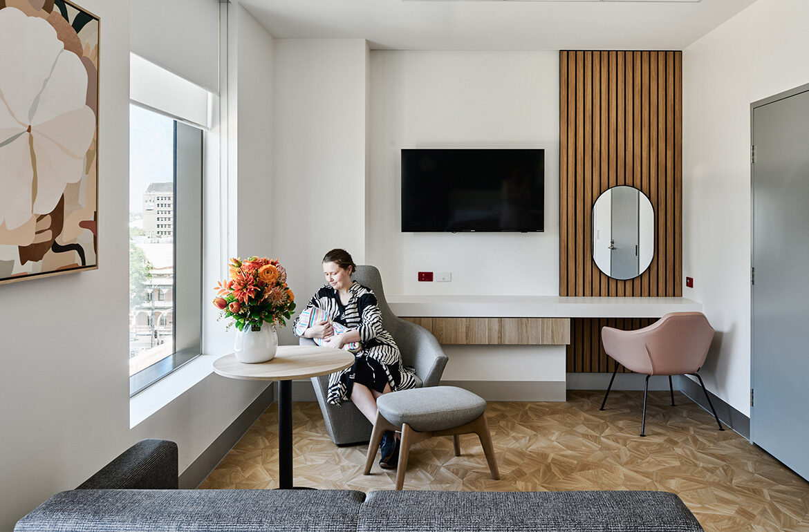 The development provides six new operating theatres, a Central Sterile Supply Department, 91 inpatient beds including Intensive Care and High Dependency Units, seven birthing suites with assessment rooms, a Special Care Nursery, recovery bays, consulting suites and a 14-chair day oncology unit.