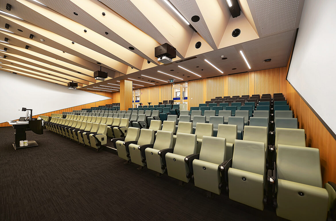 This project involved the comprehensive refurbishment of the existing Brown and Greenwood Lecture Theatres, merging them into a single, state-of-the-art mega theatre. Key features of the upgrade included: